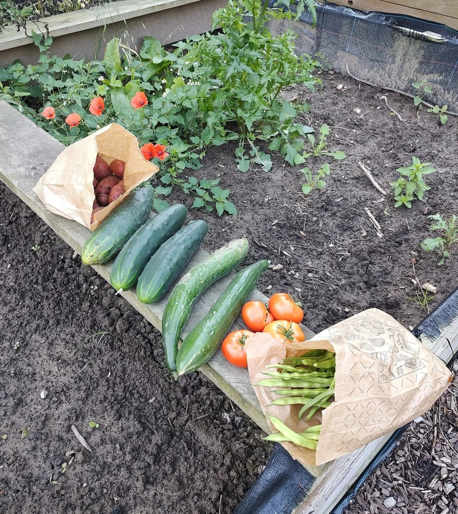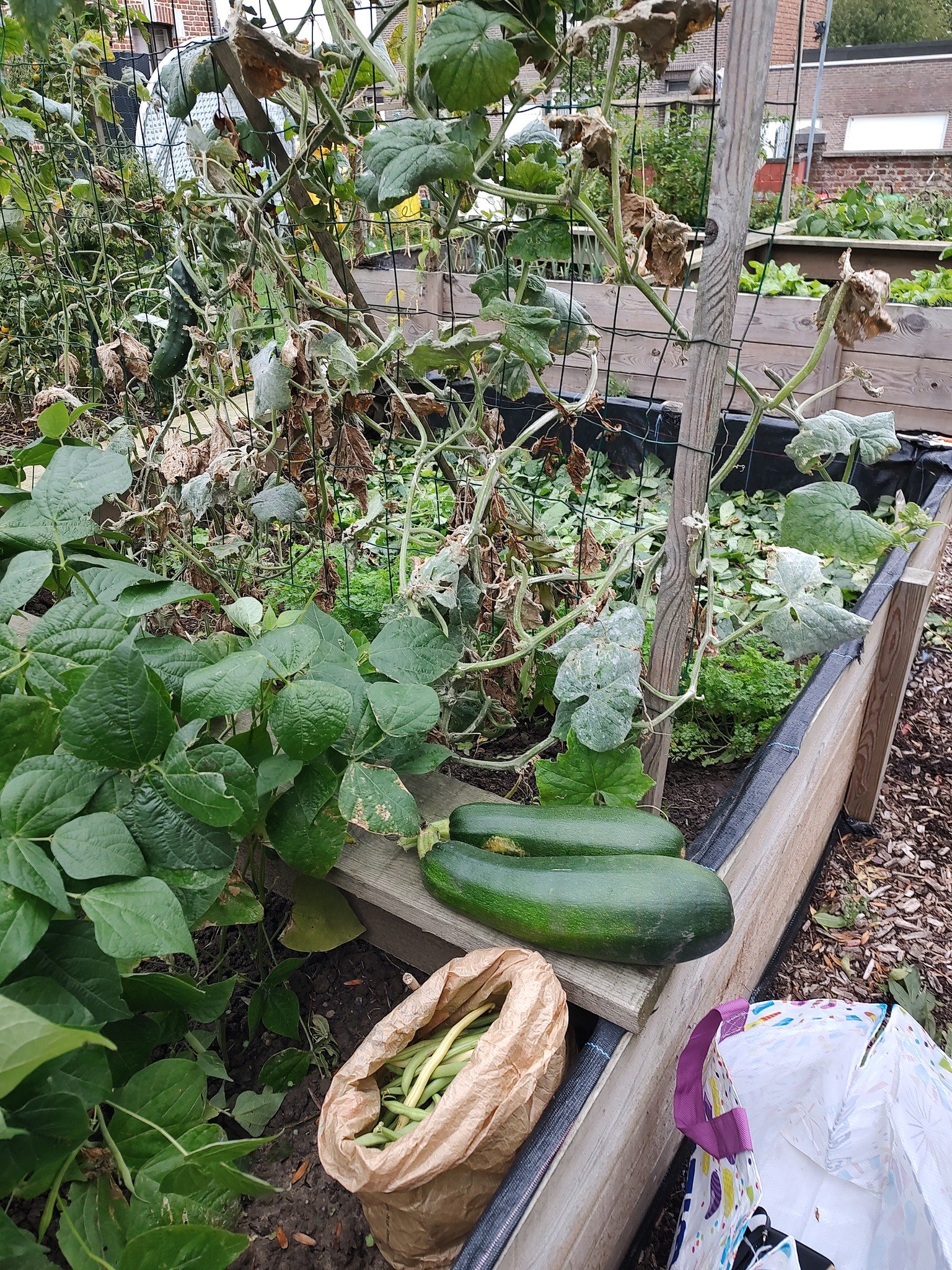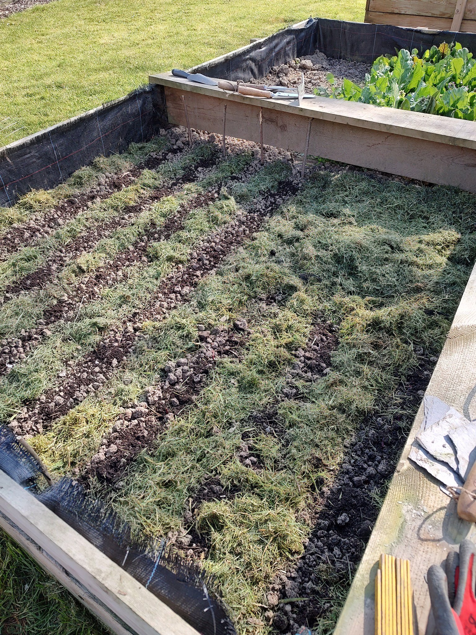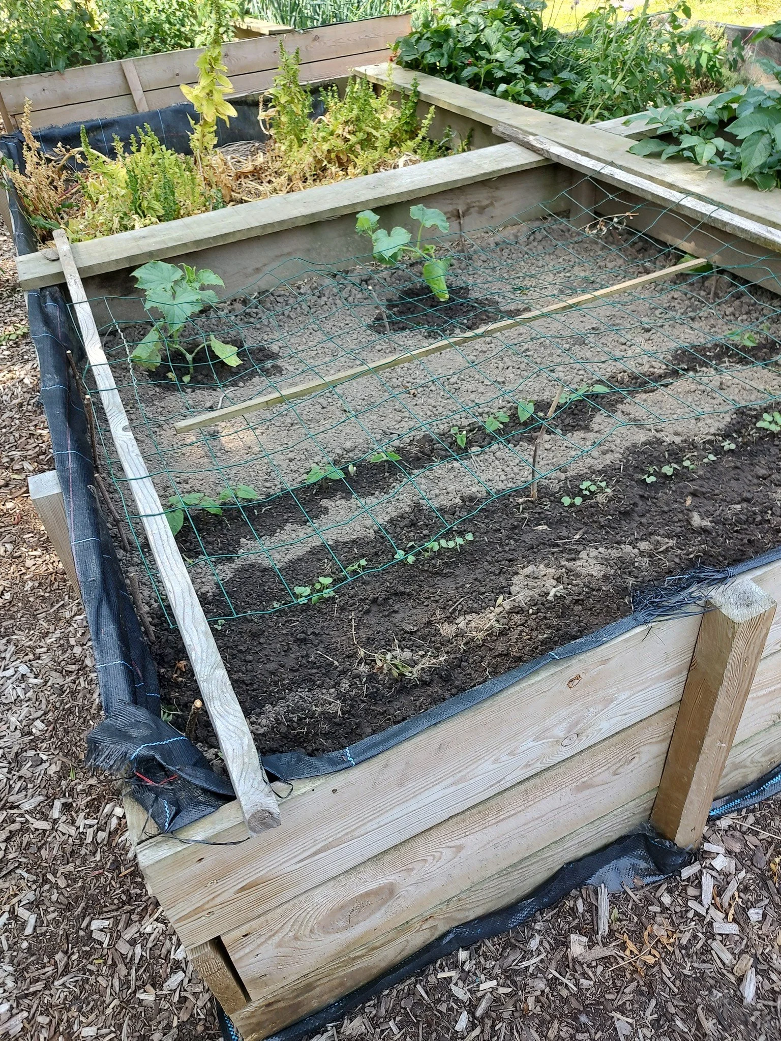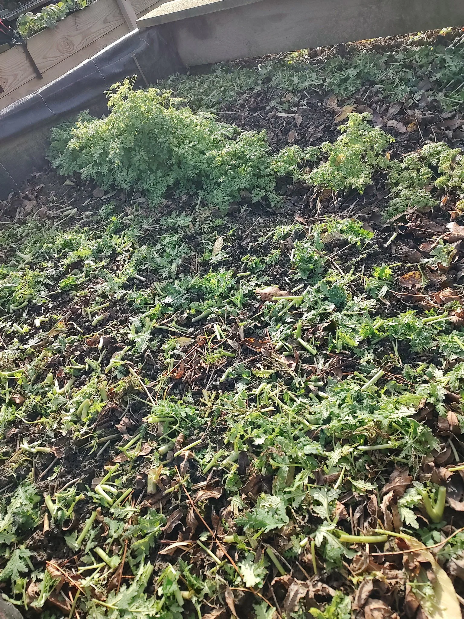 Fin novembre, afin de libérer un bac pour le printemps prochain, nous avons mis le compost dans les bacs pour maintenir la richesse du sol.